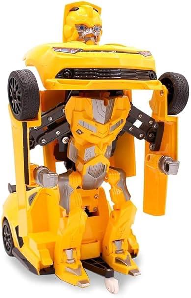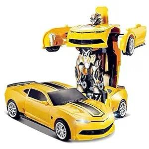 Transformer Robot Friction Car Bump and Go Convertible with Light &Music Car Toy (Yellow)